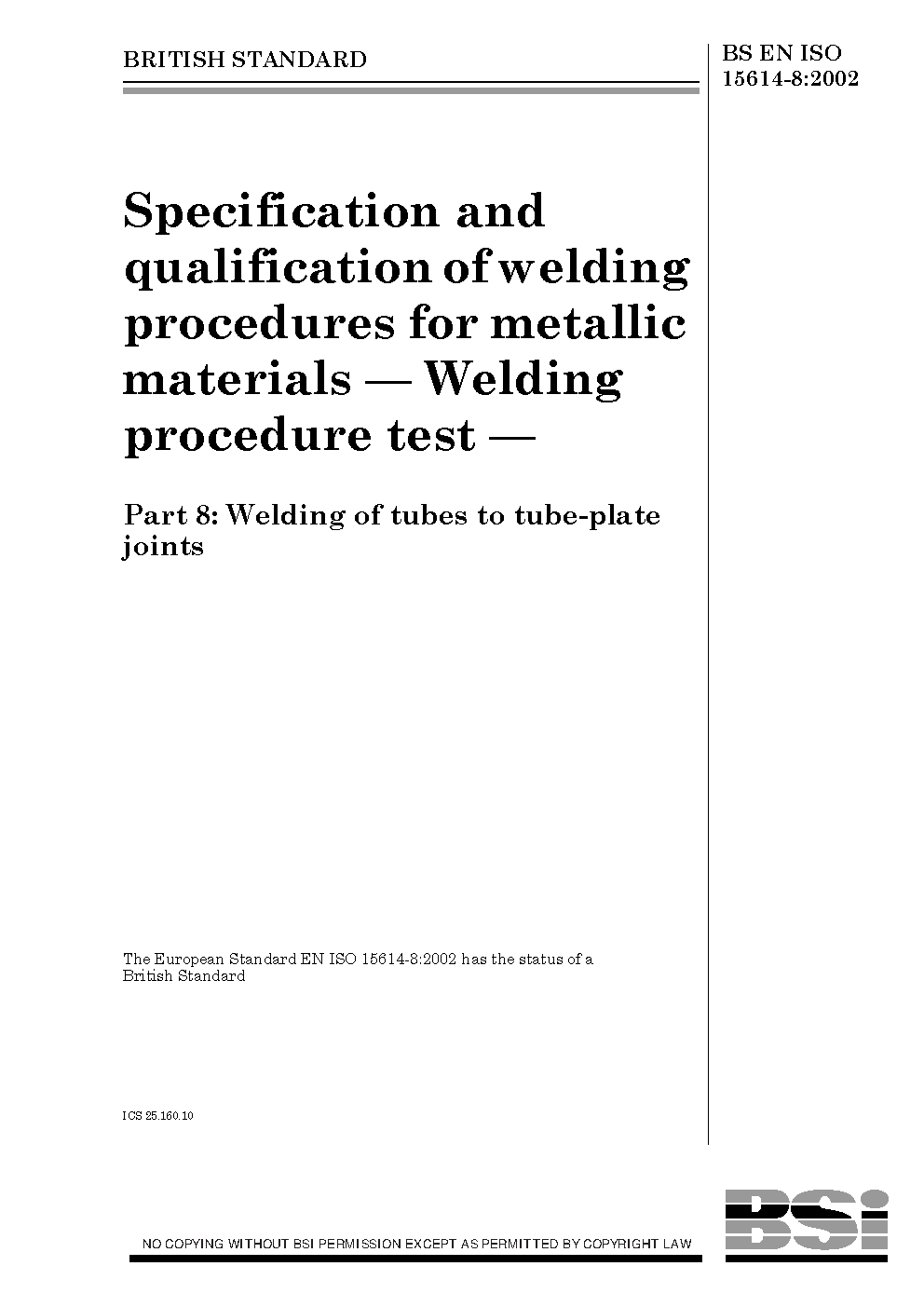 BS EN ISO 15614-8:2002