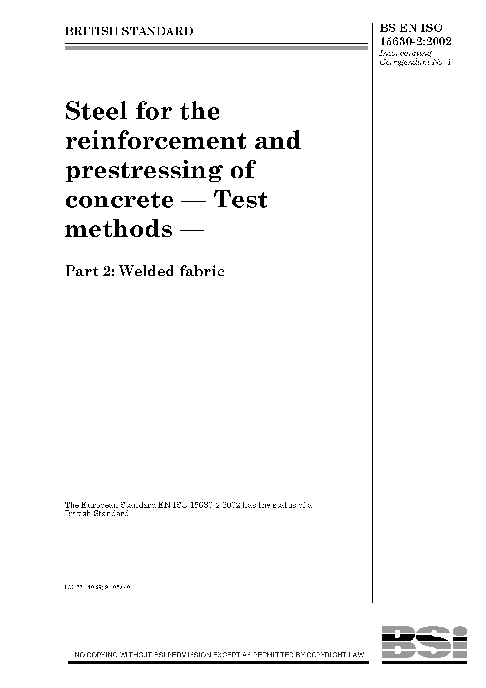 Steel for the reinforcement and prestressing of concrete. Test methods Welded fabric