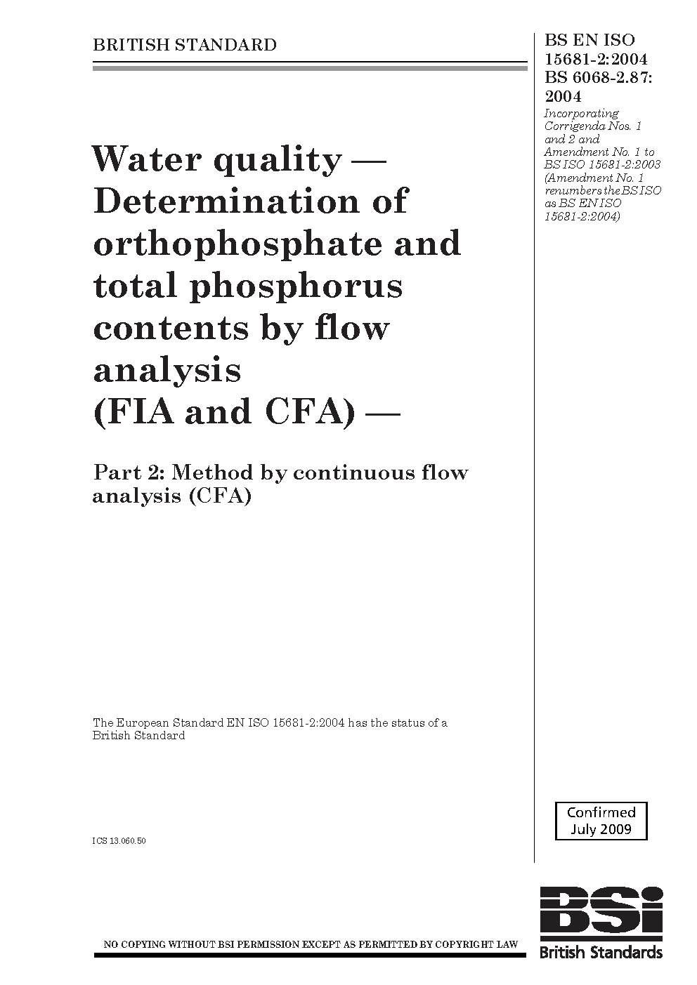 Water quality. Determination of orthophosphate and total phosphorus contents by flow analysis (FIA CFA) Method continuous (CFA)