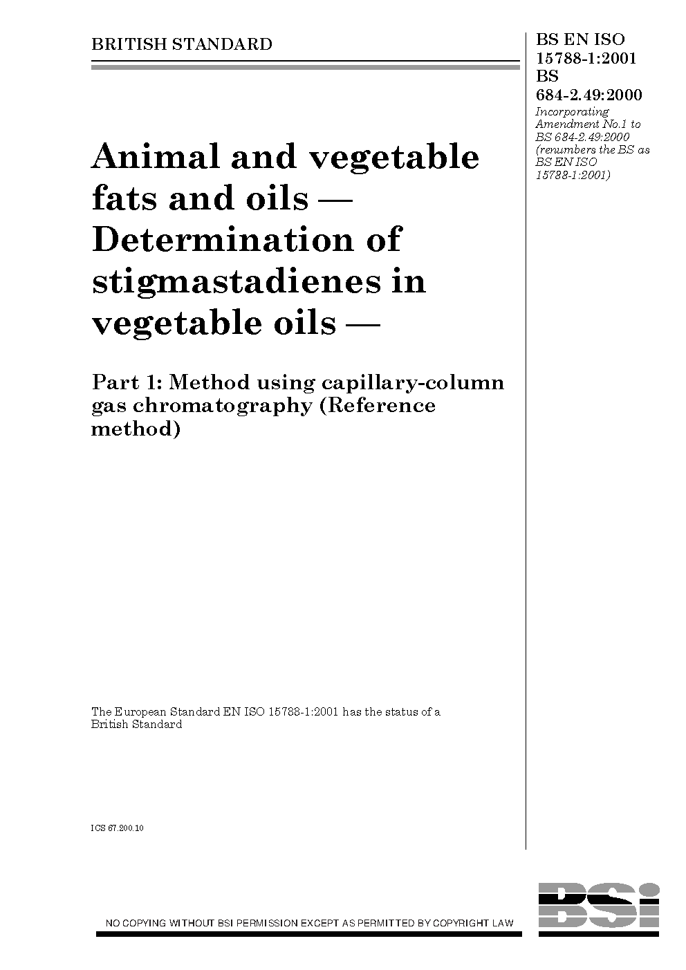 Animal and vegetable fats oils. Determination of stigmastadienes in oils Method using capillary-column gas chromatography (Reference method)