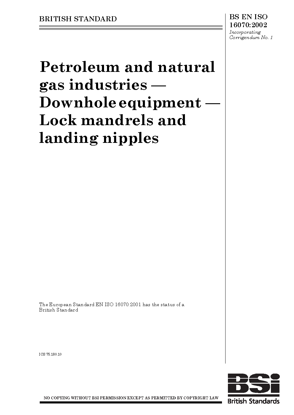 Petroleum and natural gas industries. Downhole equipment. Lock mandrels and landing nipples