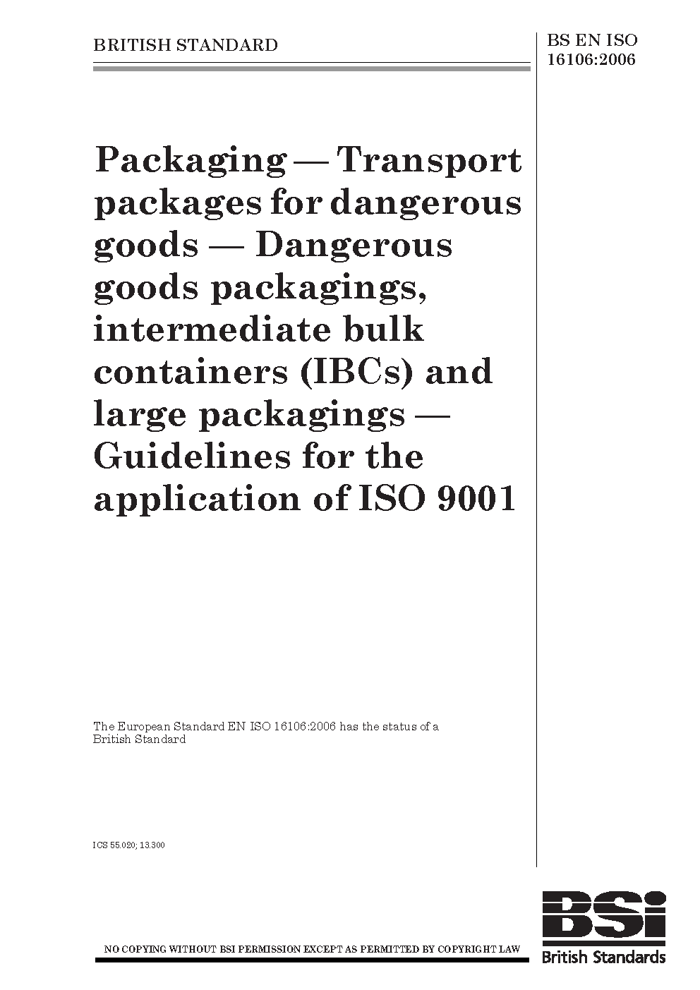 Transport packages for dangerous goods. Dangerous goods packagings, intermediate bulk containers (IBCs) and large packagings. Guidelines for the application of ISO 9001