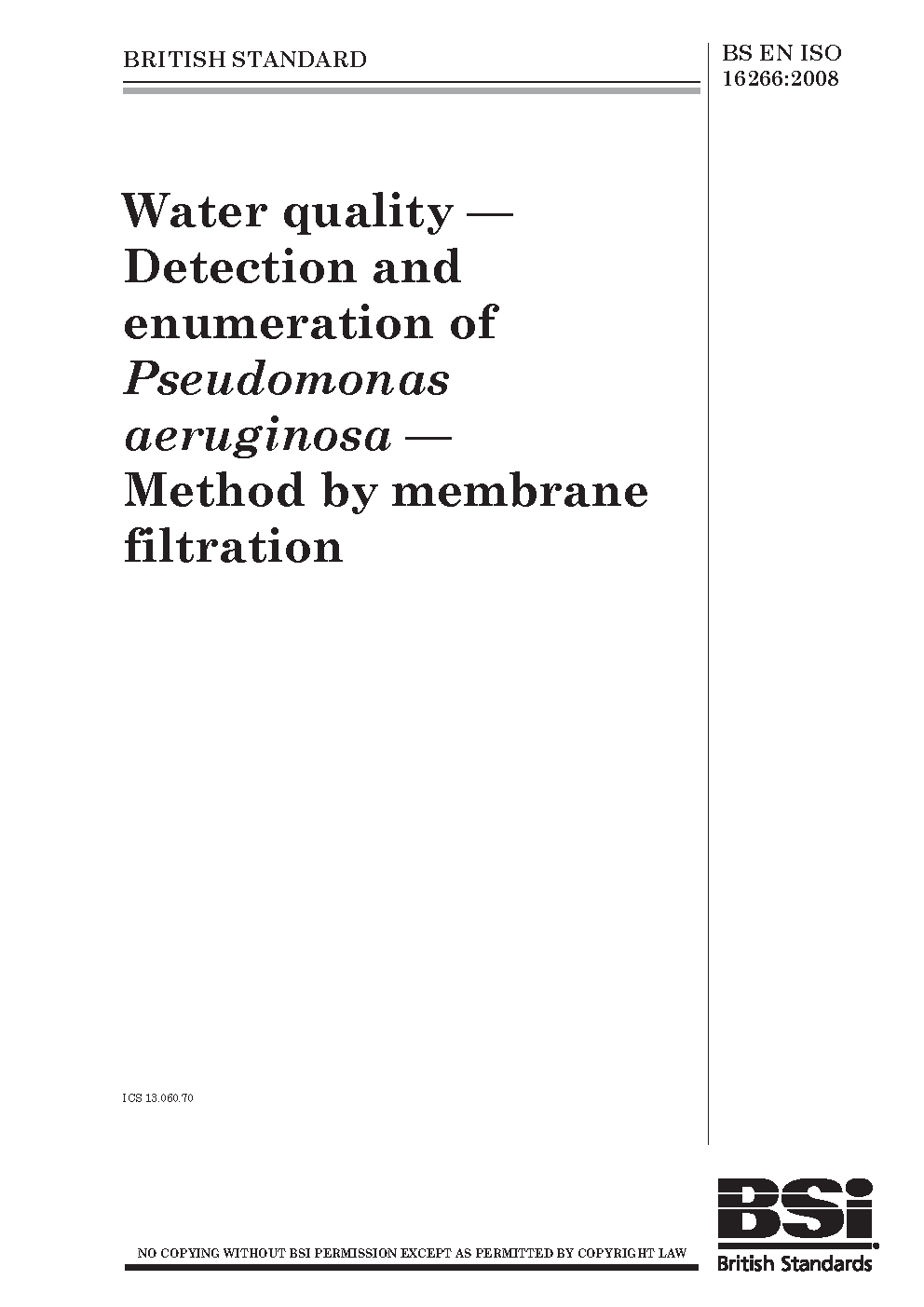 Water quality. Detection and enumeration of Pseudomonas aeruginosa. Method by membrane filtration