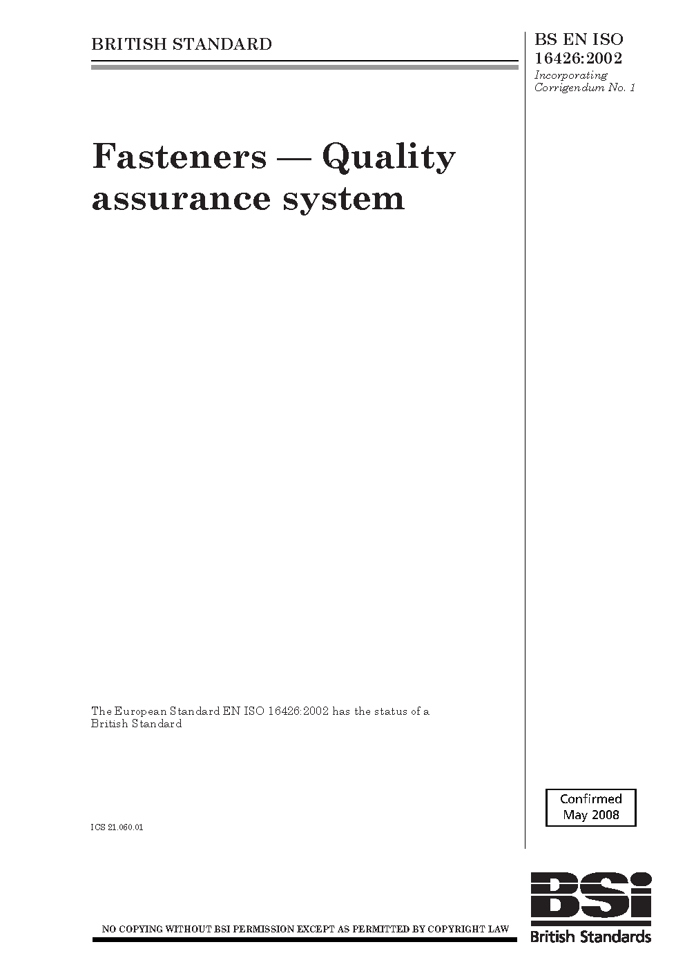 Raw materials;Quality assurance;Production;Quality assurance systems;Fasteners