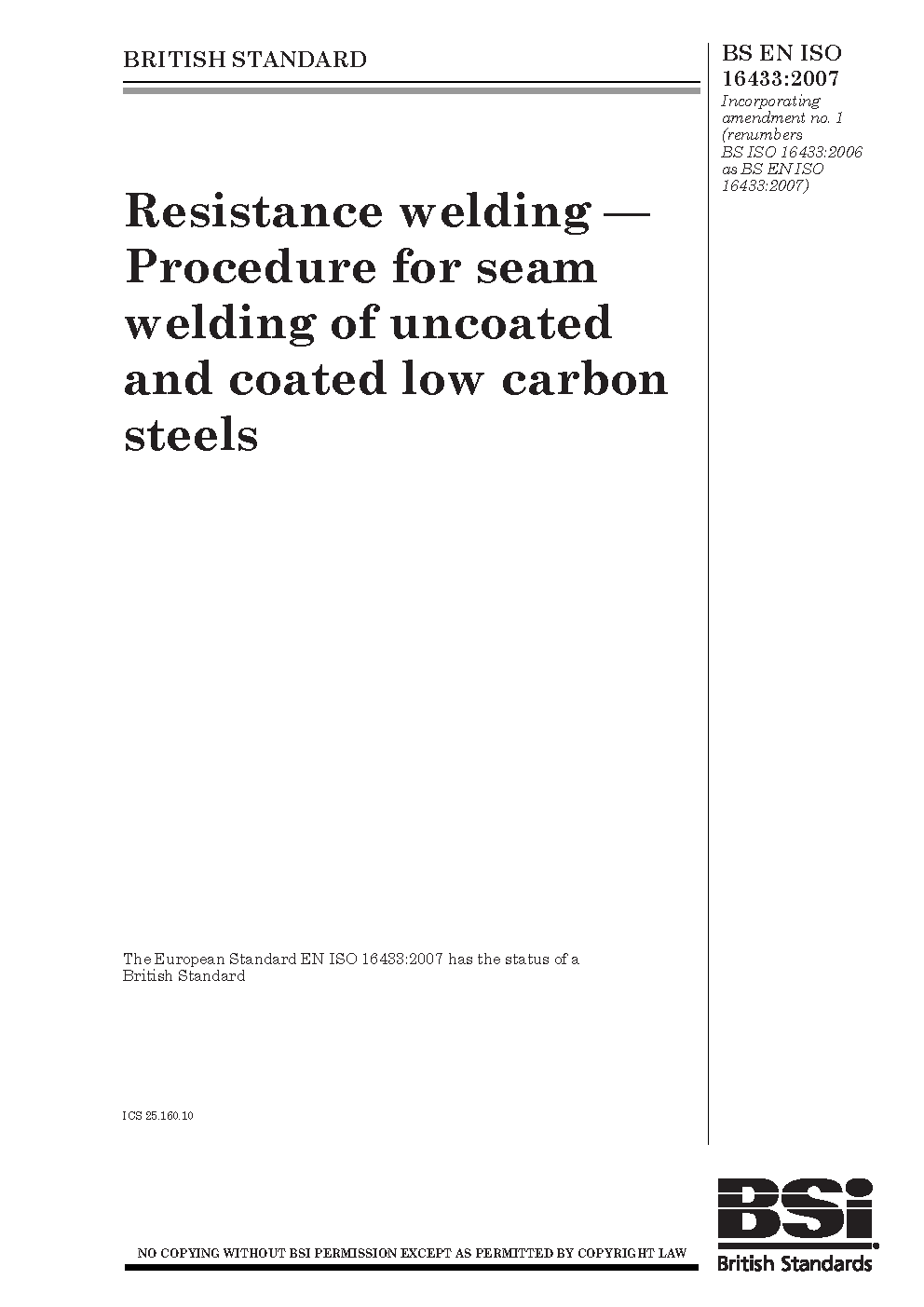 Resistance welding. Procedure for seam welding of uncoated and coated low carbon steels