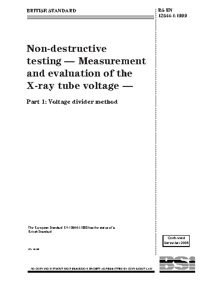 Non-destructive testing. Measurement and evaluation of the X-ray tube voltage Voltage divider method