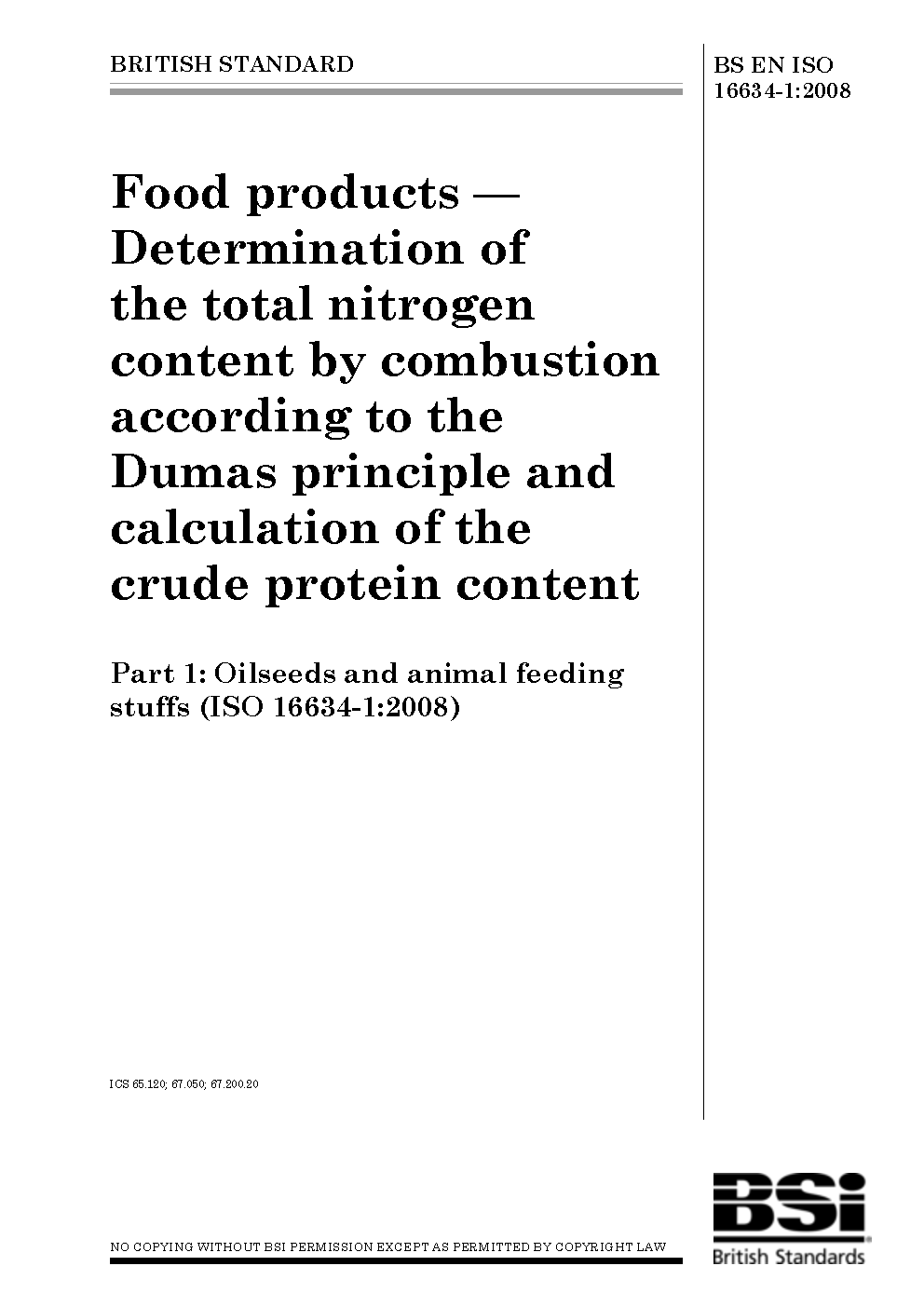 Food crops;Food testing;Nitrogen;Oilseeds;Chemical analysis and testing;Food products;Proteins;Test equipment;Animal feed;Determination of content;Combustion test methods