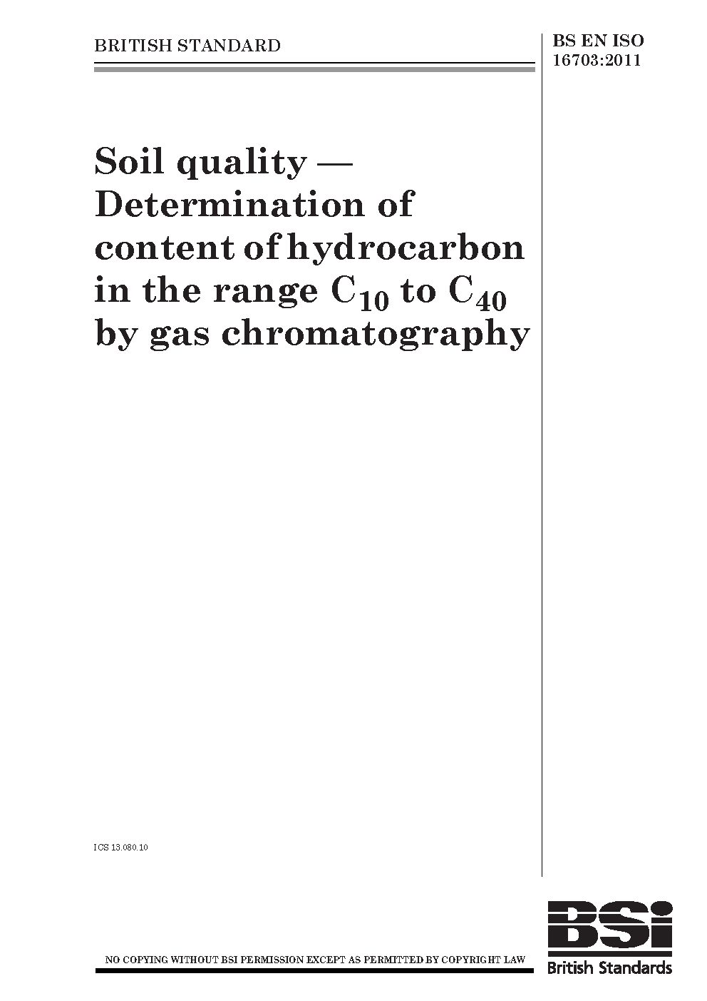 Soil quality. Determination of content of hydrocarbon in the range C10 to C40 by gas chromatography