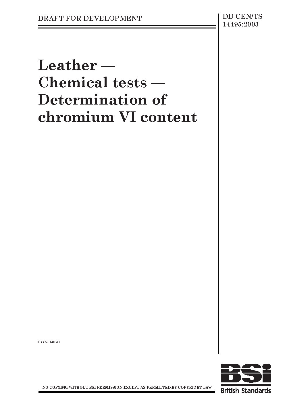 Leather. Chemical tests. Determination of chromium(VI) content