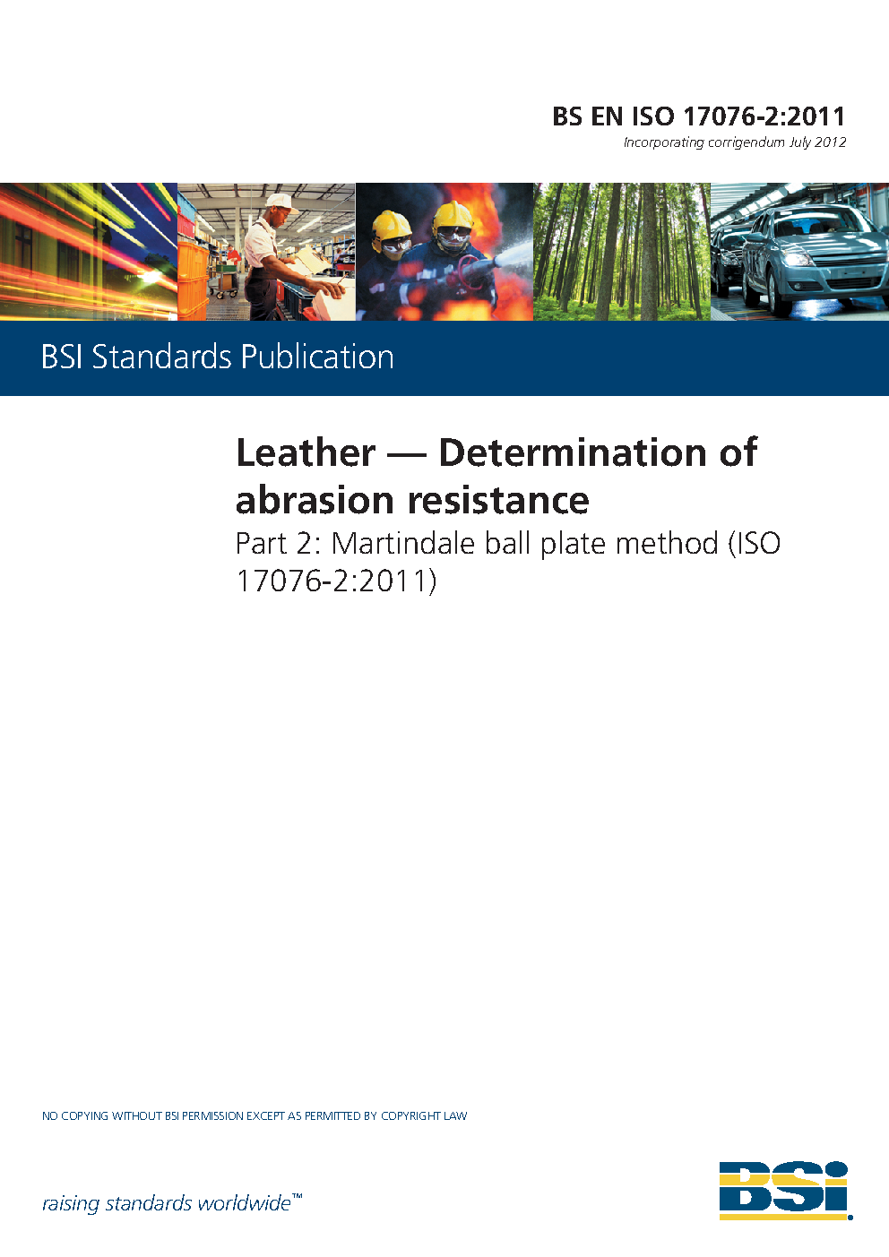 Leather. Determination of abrasion resistance Martindale ball plate method