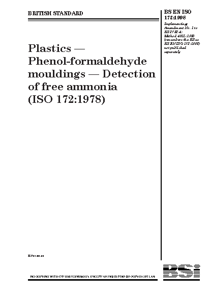Polymers;Plastics and rubber technology;Vapours;Plastics;Materials in contact with food;Indicator papers;Phenol-formaldehyde resins;Determination of content;Specimen preparation;Phenolic resins;Moulding (process);Ammonia;Chemical analysis and testing;Corrosive materials