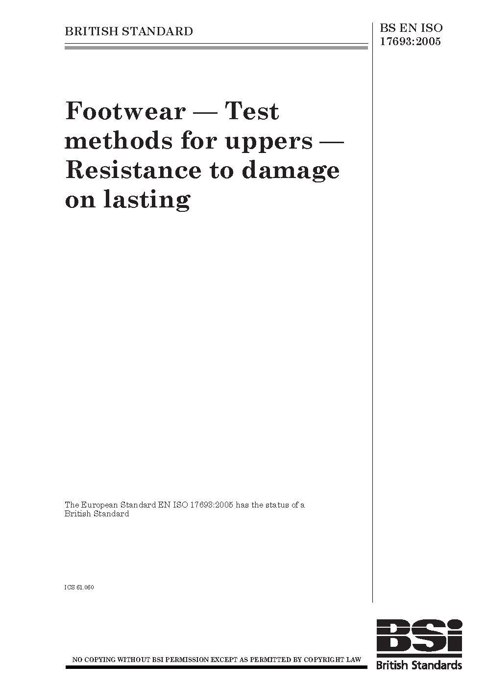 Footwear. Test methods for uppers. Resistance to damage on lasting