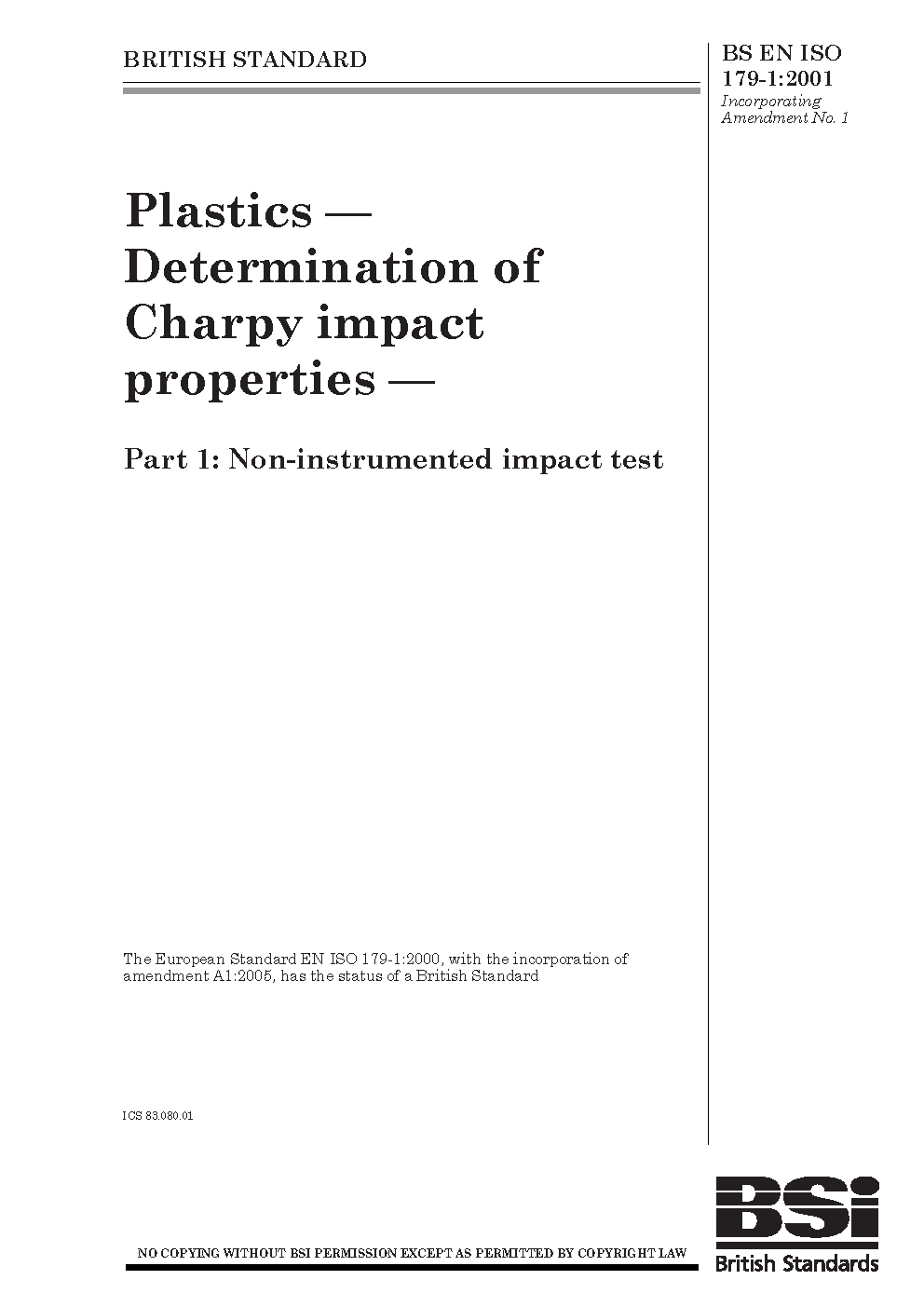 Plastics. Determination of Charpy impact properties Non-instrumented test