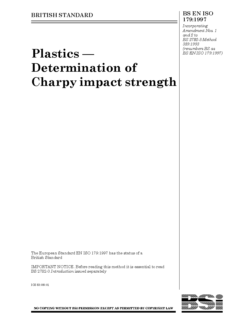 Mechanical testing;Charpy impact tests;Test equipment;Polymers;Mathematical calculations;Force measurement;Equations;Impact testing;Test specimens;Plastics;Mass;Strength of materials;Deflection tests;Specimen preparation;Mechanical properties of materials;Dimensions;Shape;Bibliography;Notches;Impact strength