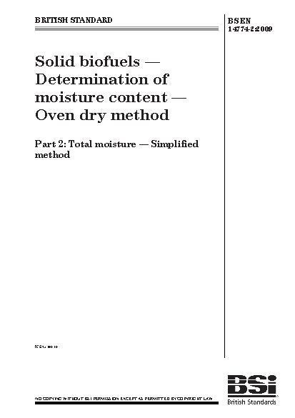 Solid biofuels. Determination of moisture content. Oven dry method Total moisture. Simplified