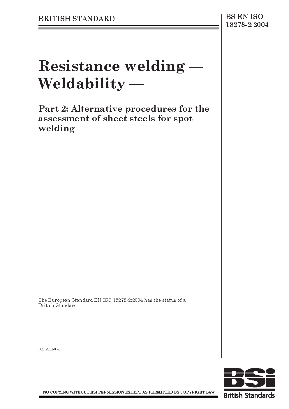 Resistance welding. Weldability Alternative procedures for the assessment of steel sheets spot welding