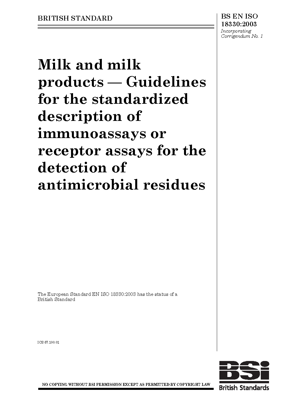 Milk and milk products. Guidelines for the standardized description of immunoassays or receptor assays for the detection of antimicrobial residues