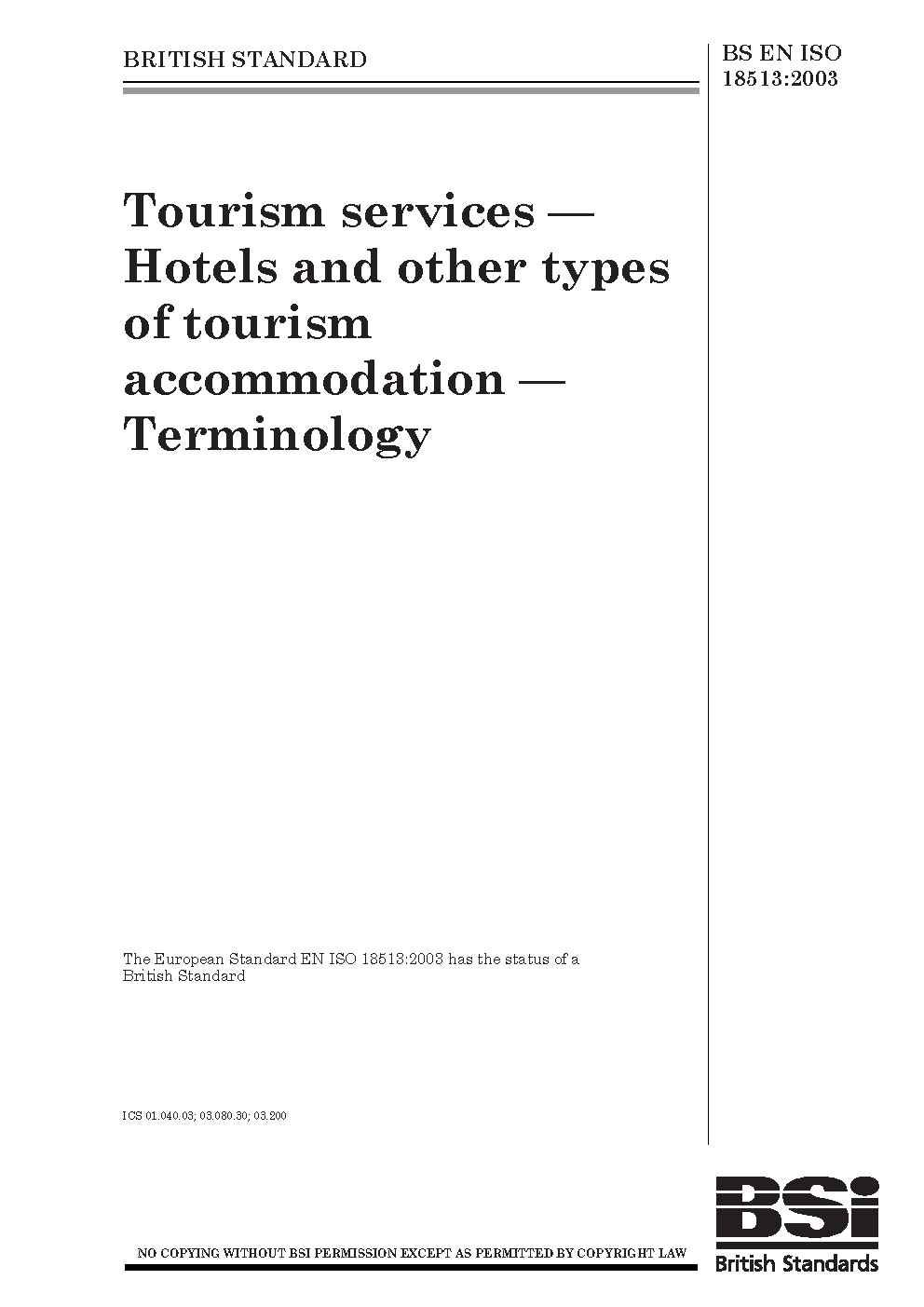 Tourism services. Hotels and other types of tourism accommodation. Terminology