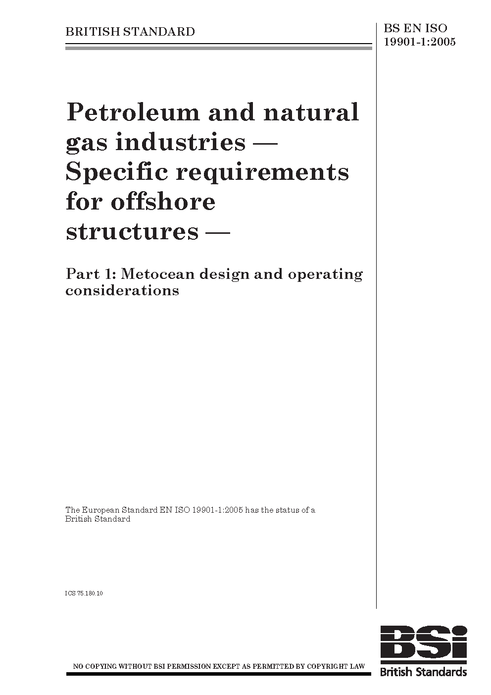 Petroleum and natural gas industries. Specific requirements for offshore structures Metocean design operating considerations