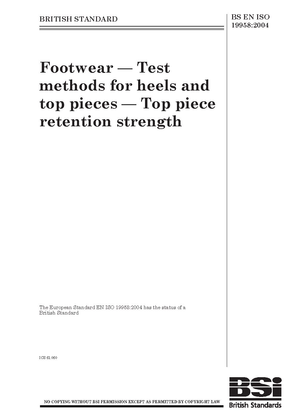 Footwear. Test methods for heels and top pieces. Top piece retention strength