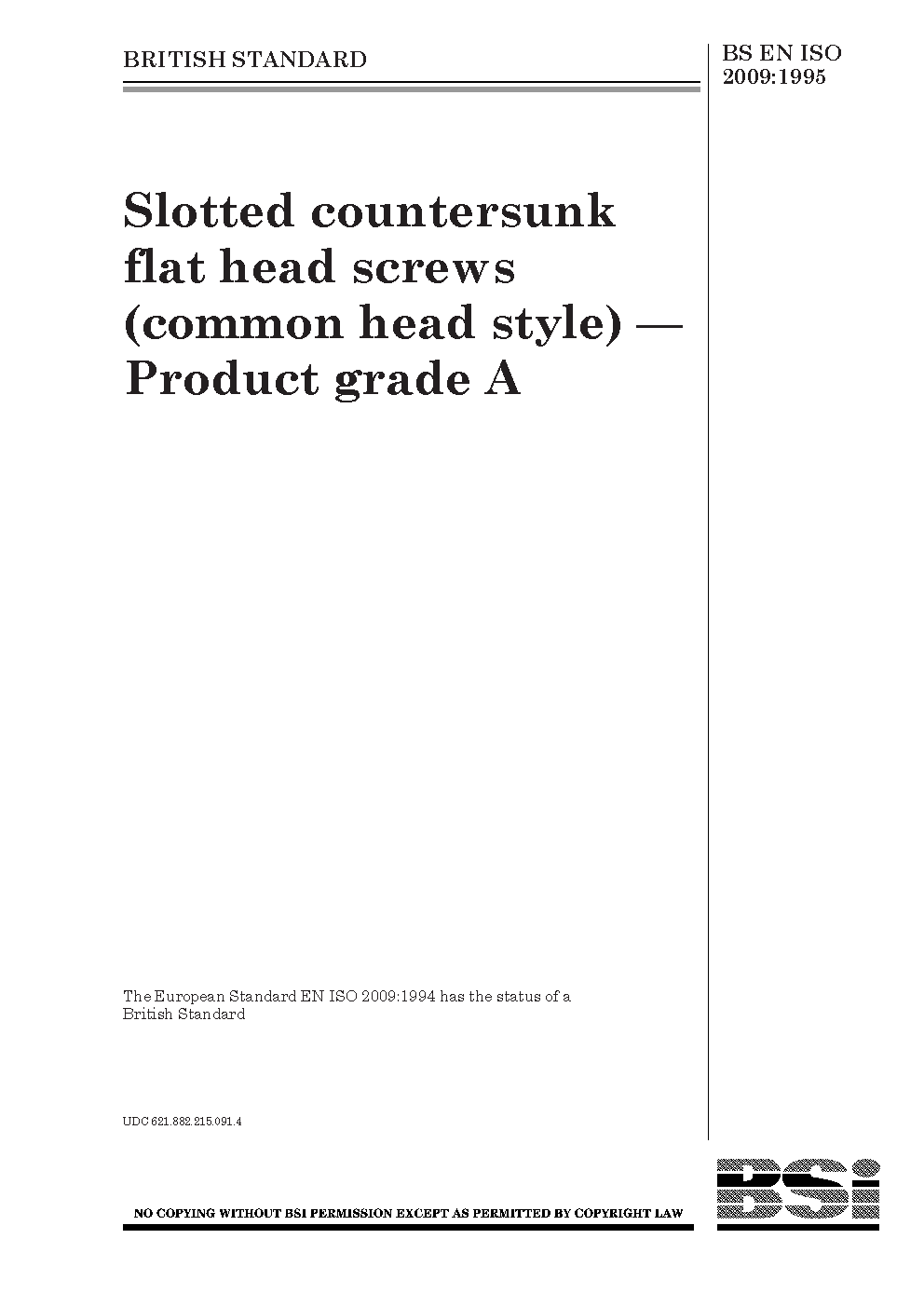 Screws (bolts);Threads;Fasteners;Slotted-head fasteners;Dimensions;Threaded fasteners;Countersunk fasteners;Grades (quality);Designations;Heads (fasteners);External-thread fasteners;Preferred sizes;Dimensional tolerances