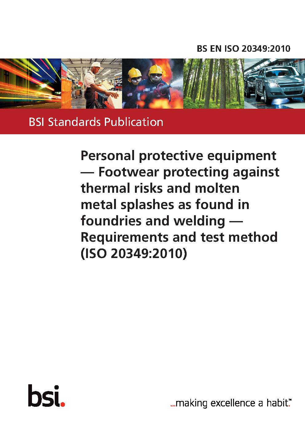 Personal protective equipment. Footwear protecting against thermal risks and molten metal splashes as found in foundries and welding. Requirements and test method