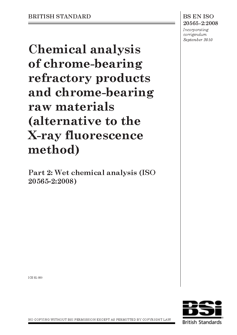 Chemical analysis of chrome-bearing refractory products and raw materials (alternative to the X-ray fluorescence method) Wet chemical