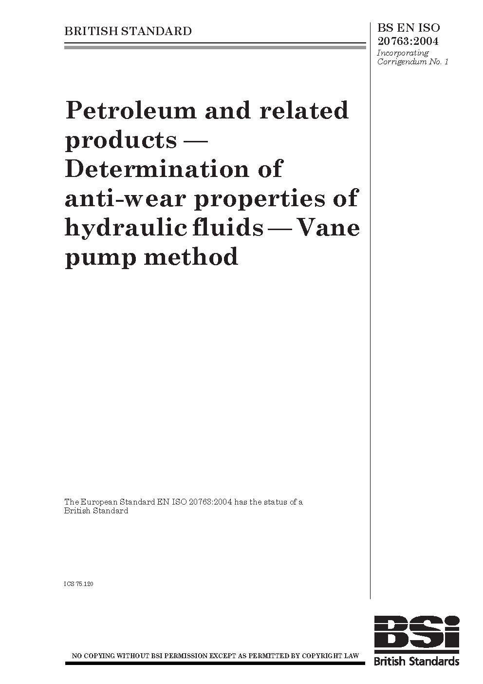 Petroleum and related products. Determination of anti-wear properties of hydraulic fluids. Vane pump method
