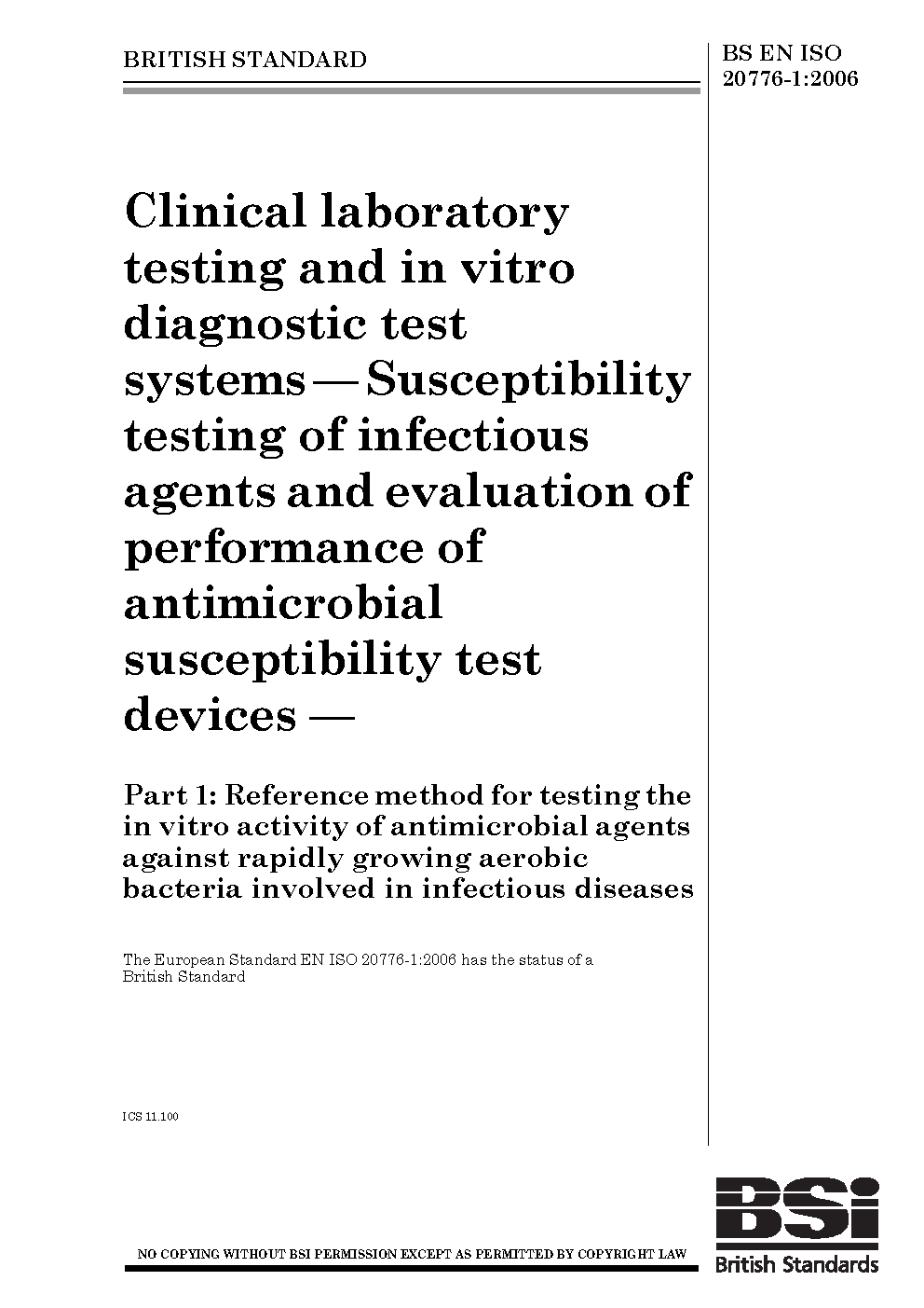 Susceptibility testing of infectious agents and evaluation performance antimicrobial susceptibility test devices Broth micro-dilution reference method for the in vitro activity against rapidly growing aerobic bacteria involved diseases