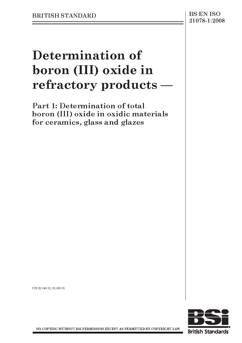 Boron;Chemical analysis and testing;Refractories;Oxides;Boric oxide;Refractory materials;Glass;Absorption spectrophotometry;Volumetric analysis;Ceramic glazes;Ceramics;Determination of content;Emission spectrophotometry