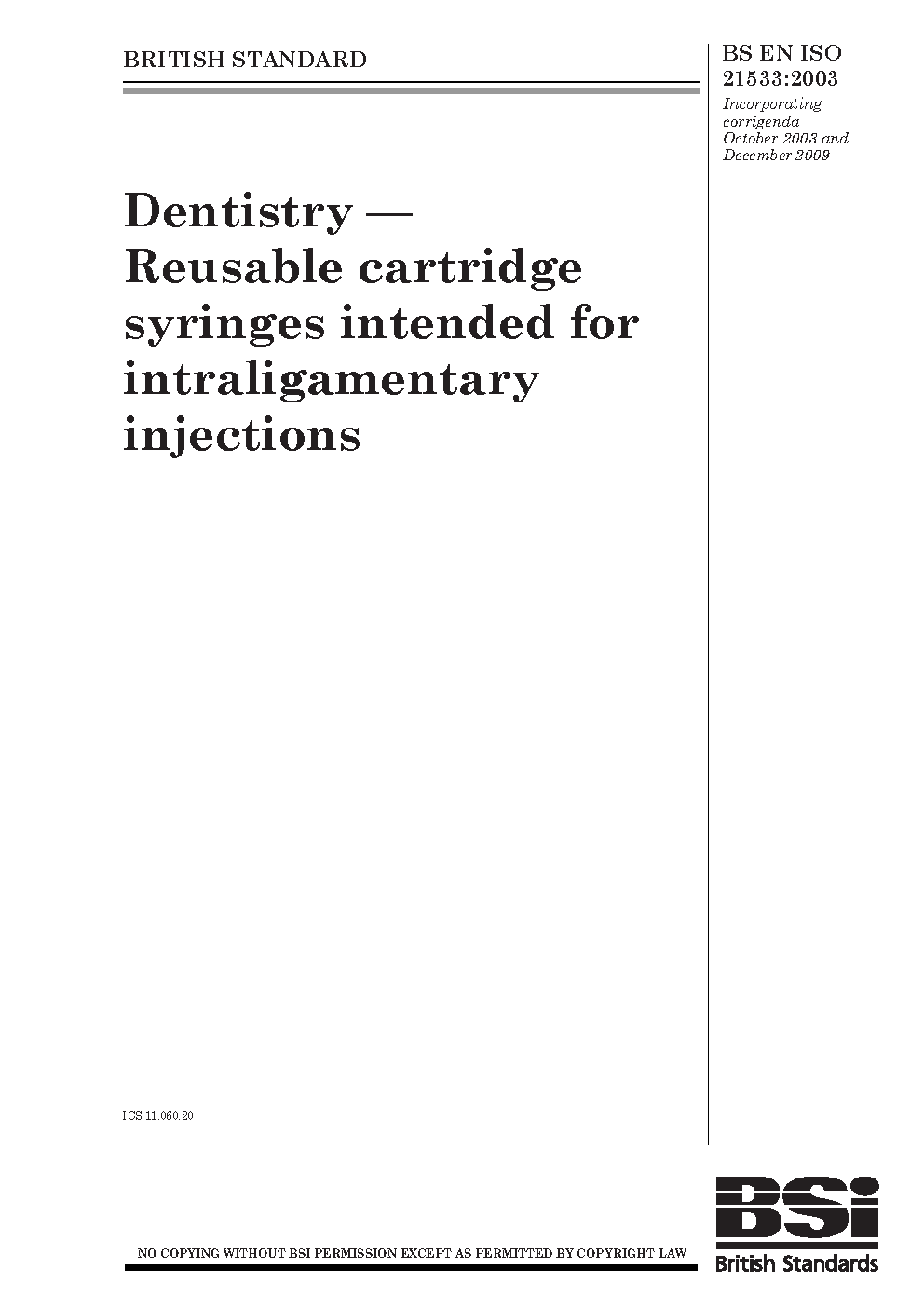 Dentistry. Reusable cartridge syringes intended for intraligamentary injections