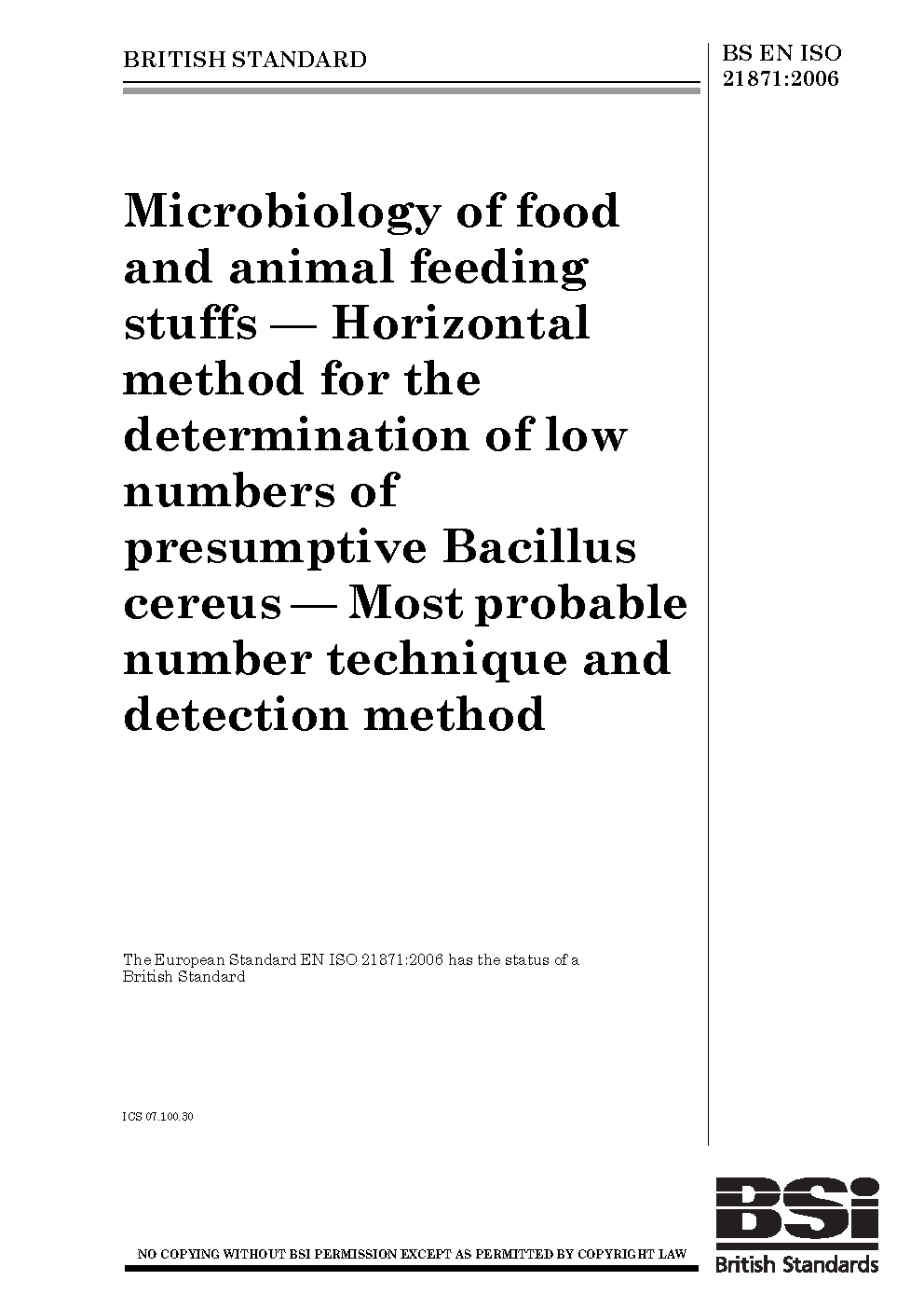 BS EN ISO 21871:2006