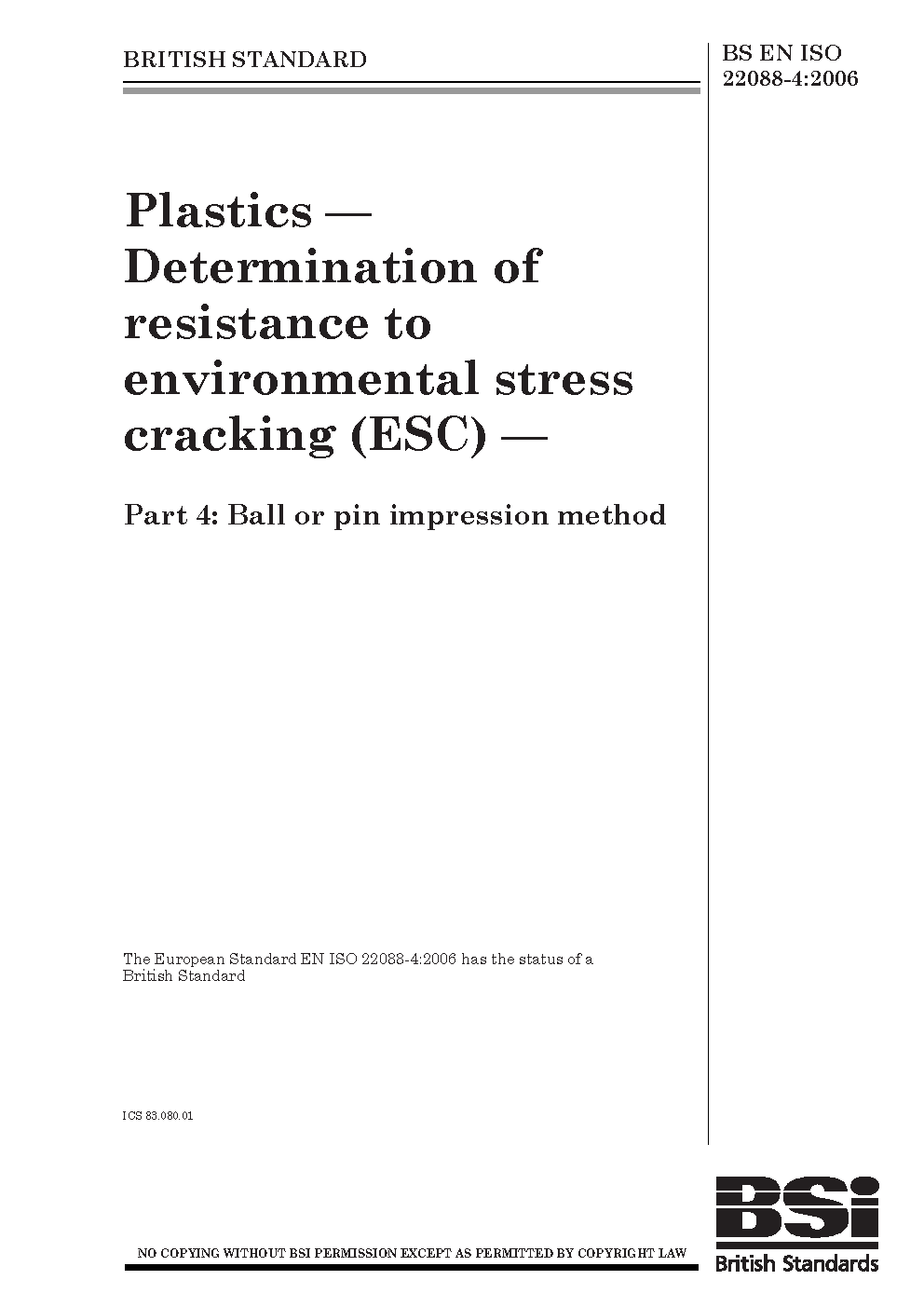 Plastics. Determination of resistance to environmental stress cracking (ESC) Ball or pin impression method