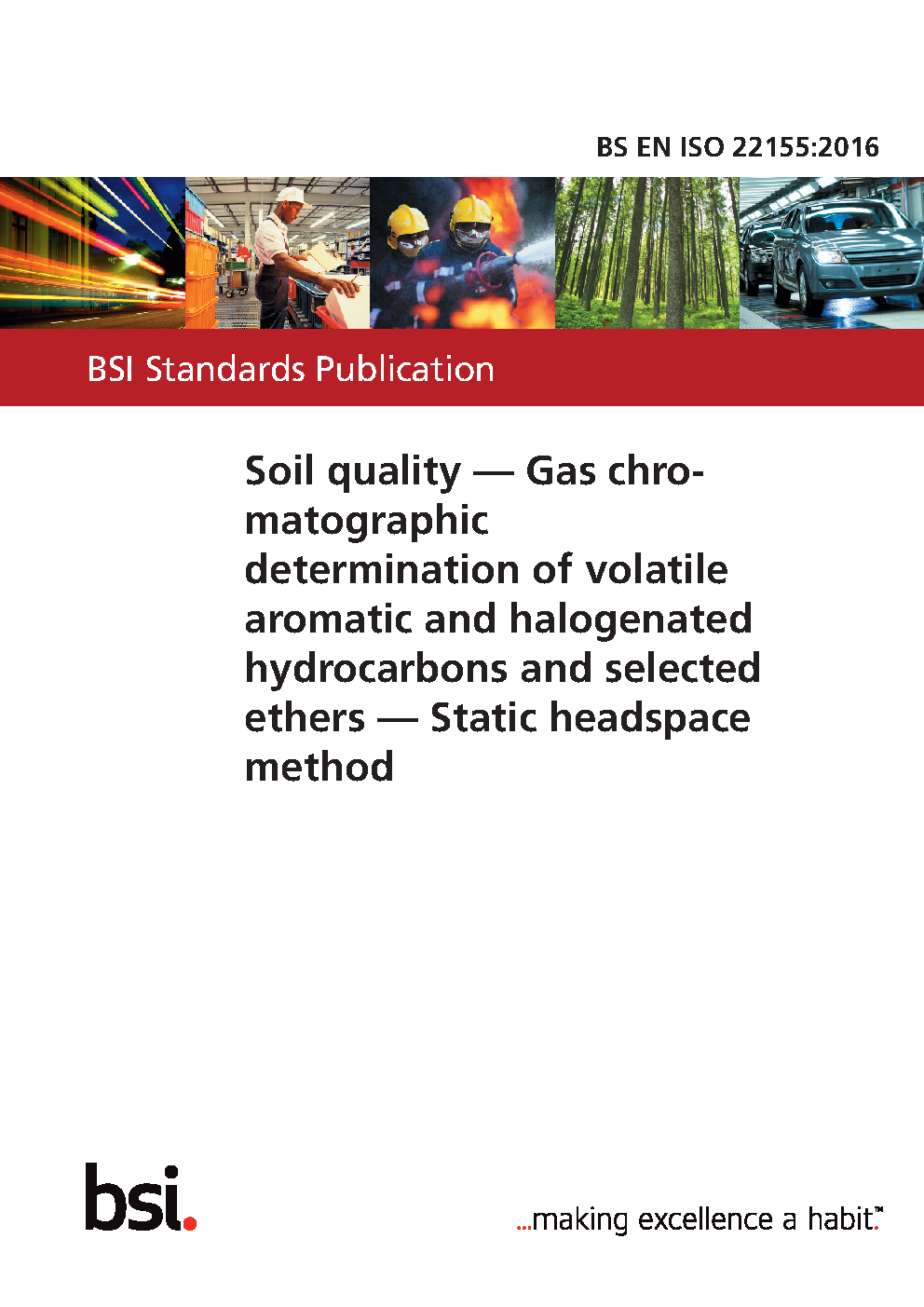 Soil quality. Gas chromatographic determination of volatile aromatic and halogenated hydrocarbons and selected ethers. Static headspace method