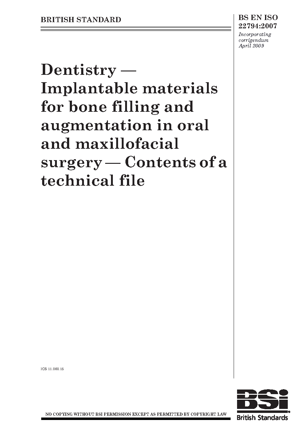 BS EN ISO 22794:2009