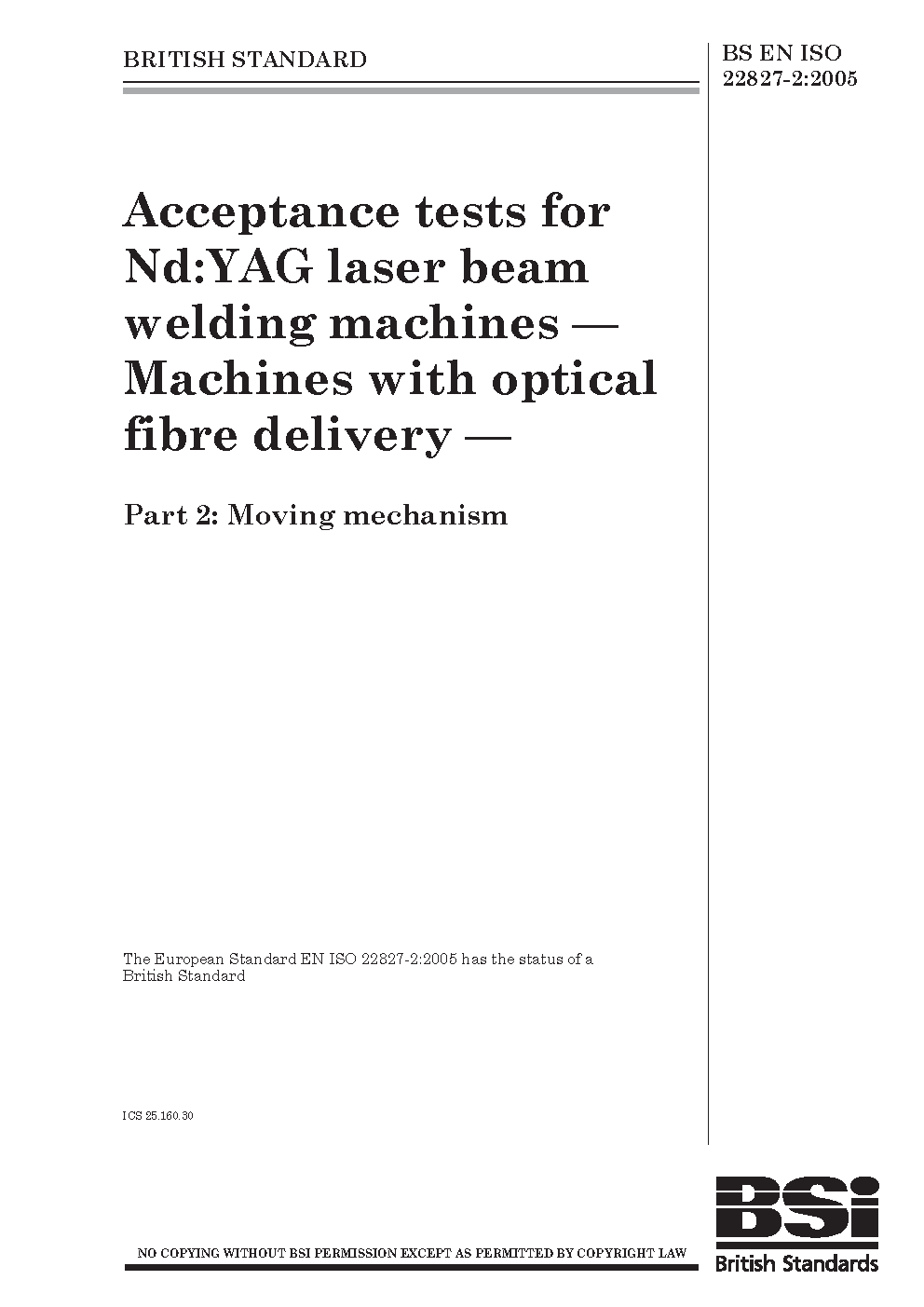 Acceptance tests for Nd:YAG laser beam welding machines. Machines with optical fibre delivery Moving mechanism