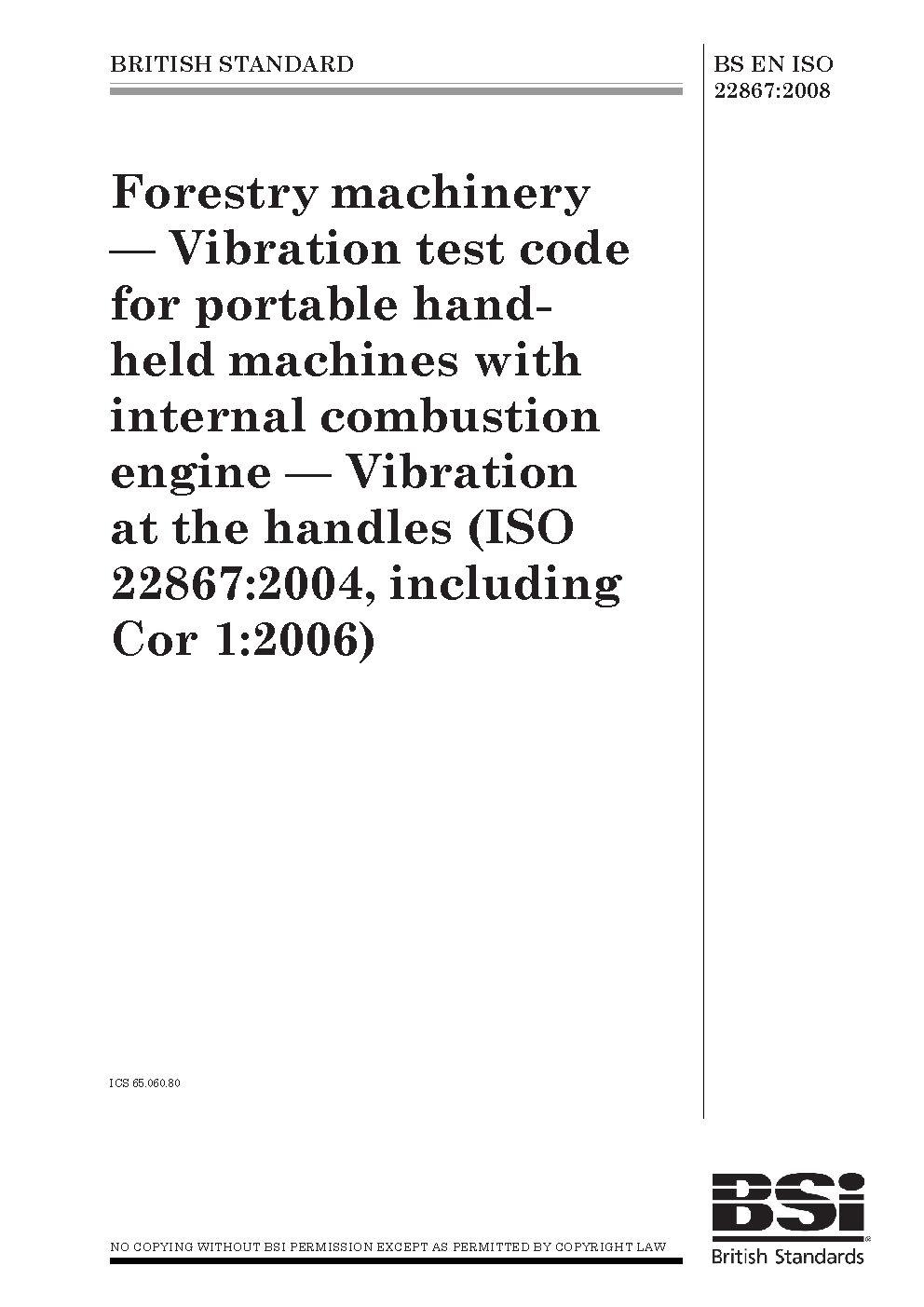 Forestry machinery. Vibration test code for portable hand-held machines with internal combustion engine. Vibration at the handles