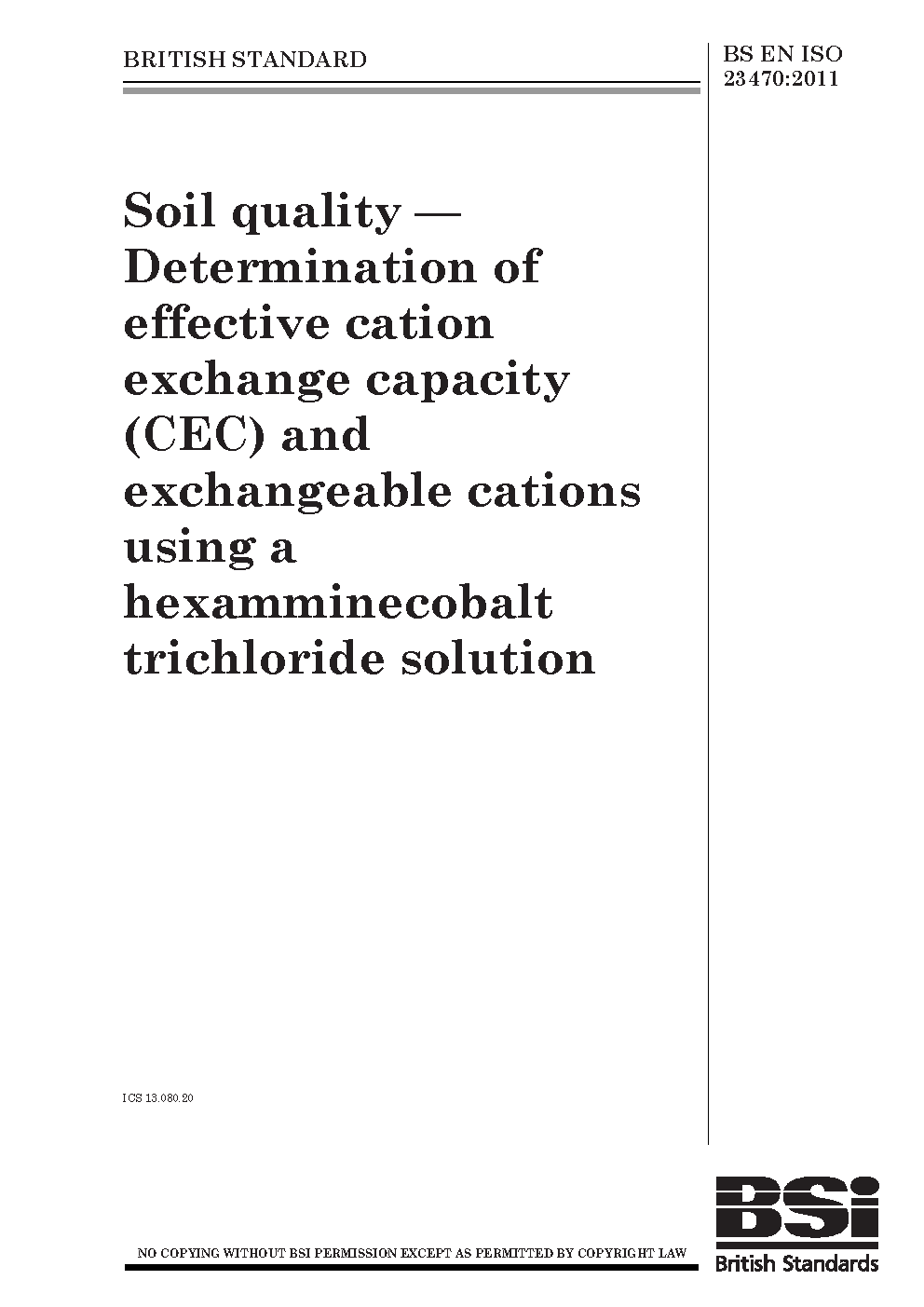 Soil quality. Determination of effective cation exchange capacity (CEC) and exchangeable cations using a hexamminecobalt trichloride solution