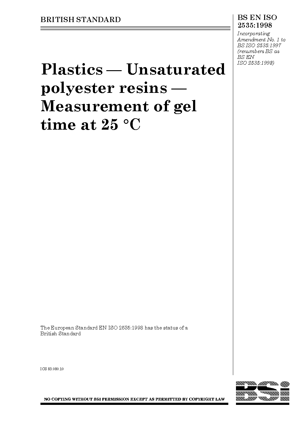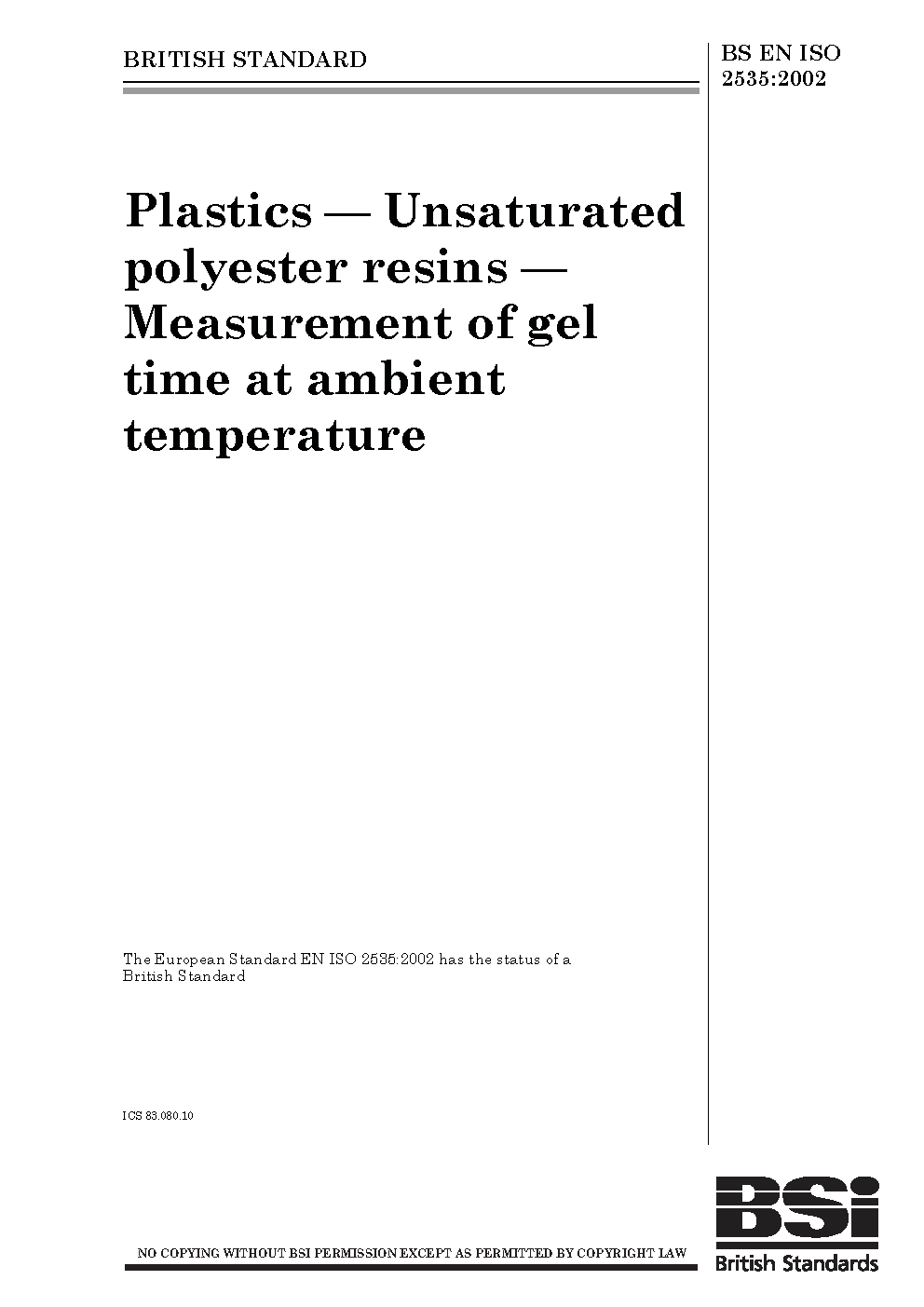 Plastics. Unsaturated polyester resins. Measurement of gel time at ambient temperature