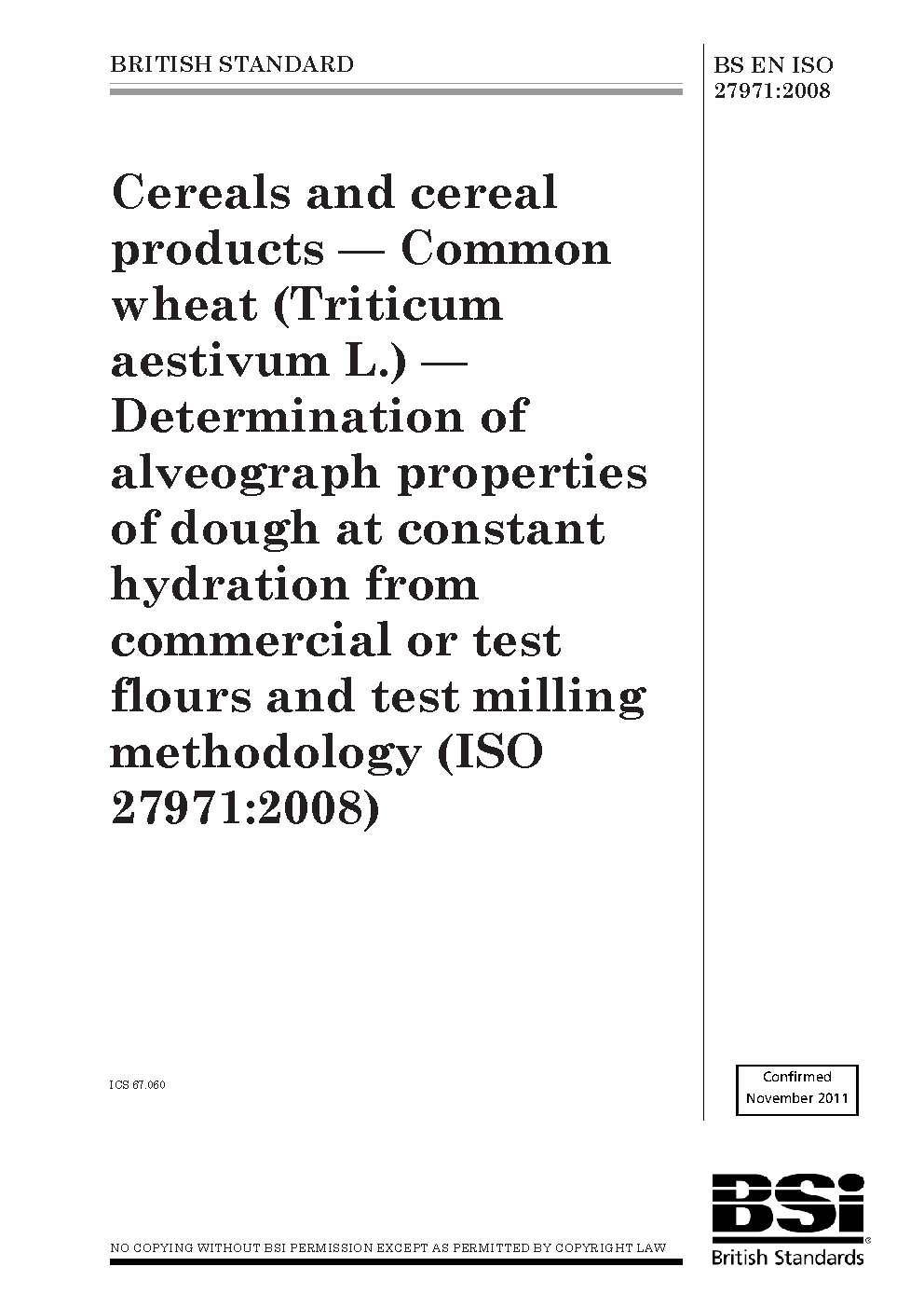 Cereals and cereal products. Common wheat (Triticum aestivum L.). Determination of alveograph properties of dough at constant hydration from commercial or test flours and test milling methodology