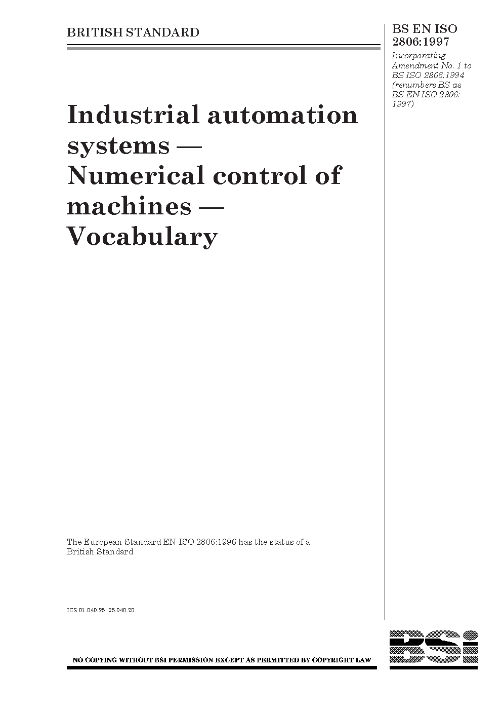 Industrial automation systems. Numerical control of machines. Vocabulary