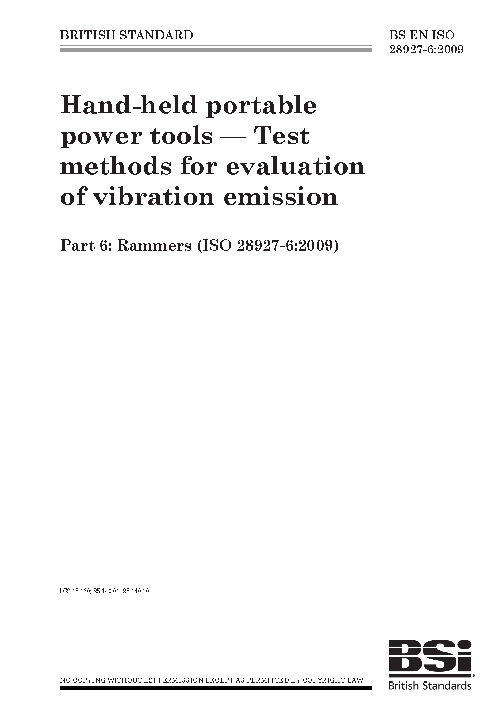 Hand-held portable power tools. Test methods for evaluation of vibration emission Rammers