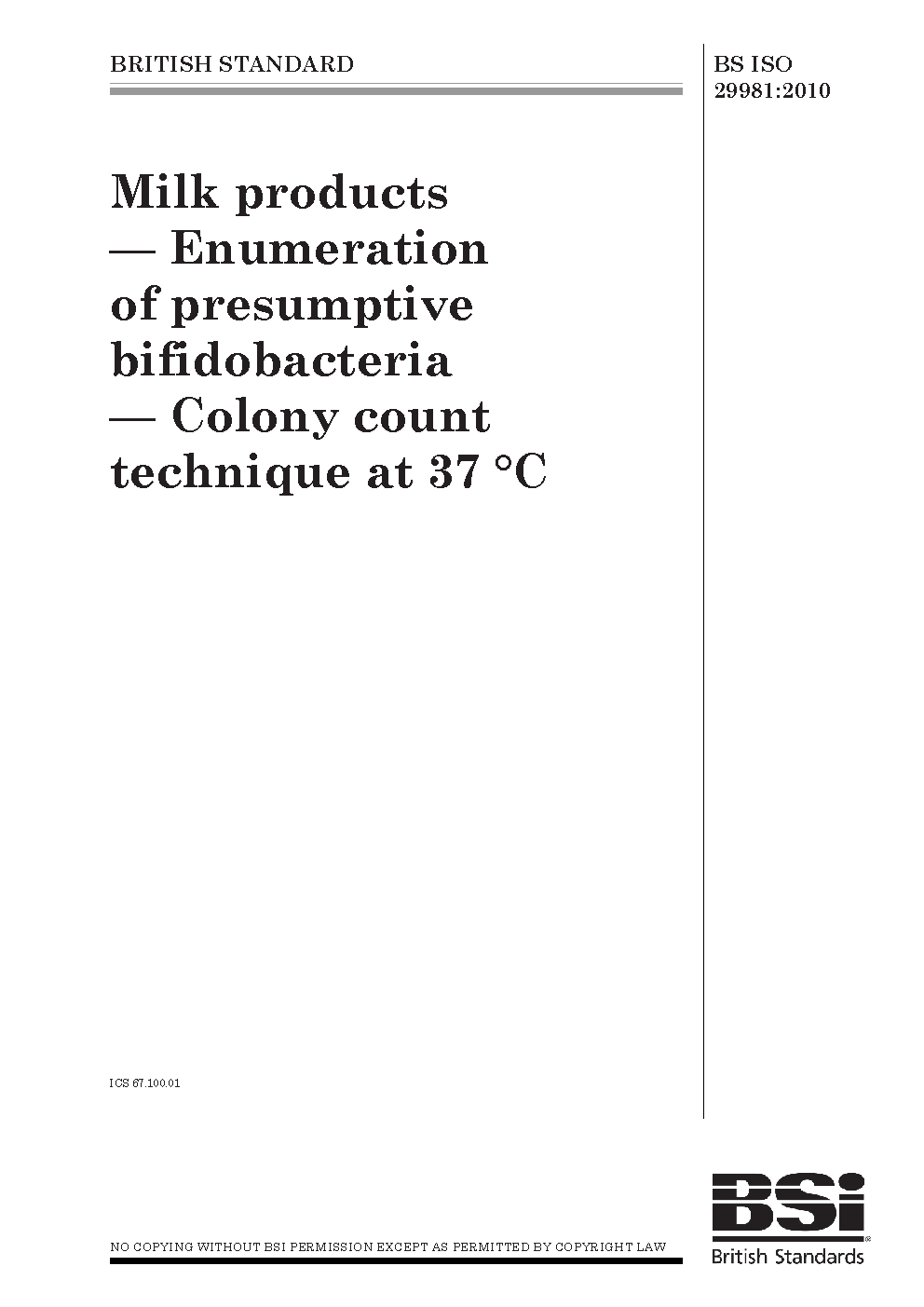 Milk products. Enumeration of bifidobacteria. Colony-count technique
