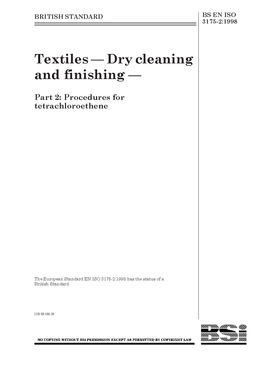 Textiles. Dry cleaning and finishing Procedures for tetrachloroethene