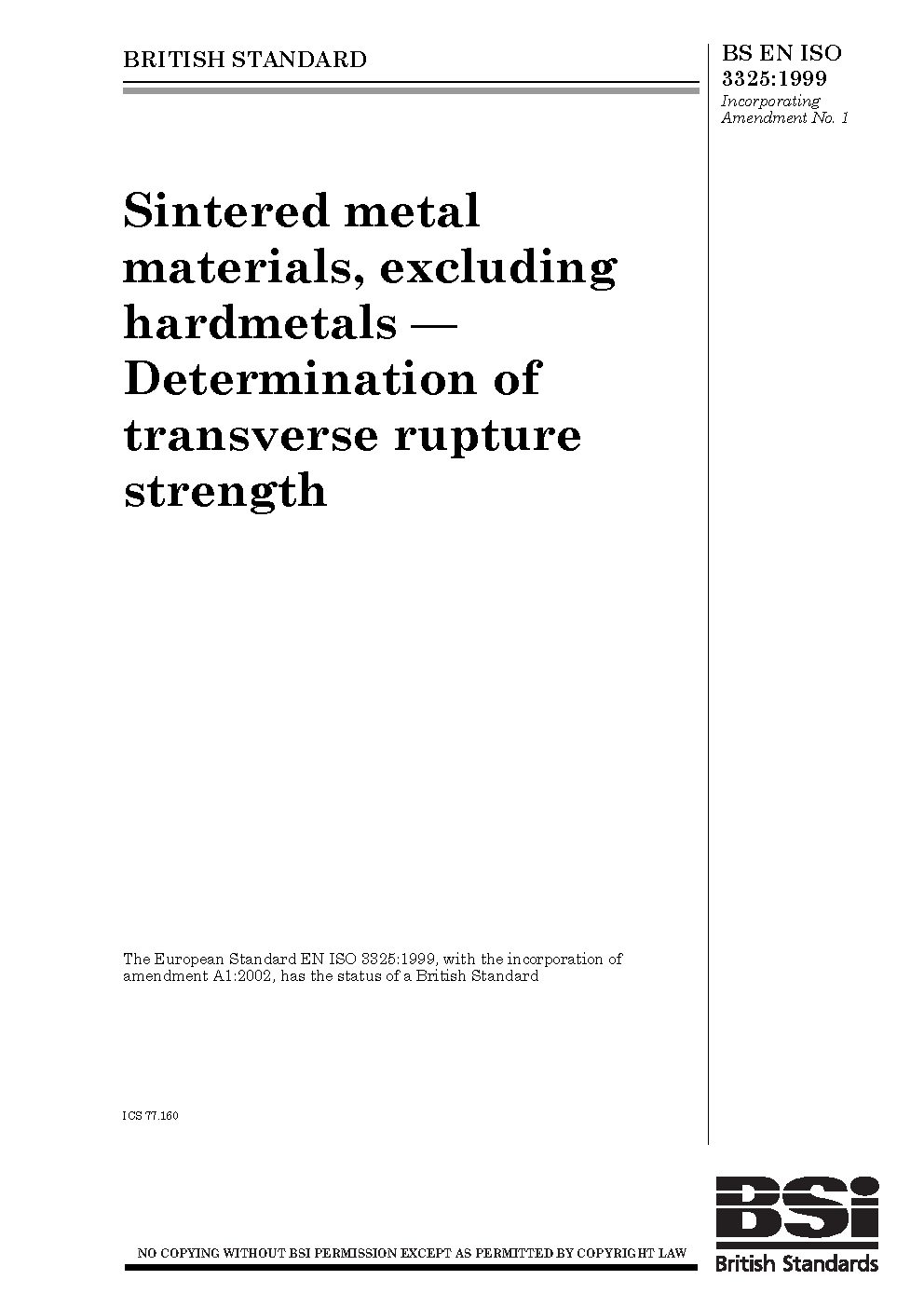 Test specimens;Mechanical testing;Dimensions;Transverse;Fracture;Metals;Strength of materials;Powder metallurgy;Test equipment;Particulate materials;Sintered products;Breaking load;Design