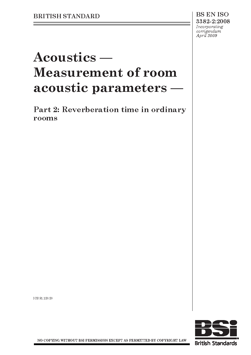 Reverberation;Testing conditions;Test equipment;Sound recording;Sound intensity;Acoustic measurement;Buildings;Reverberation time;Acoustics;Acoustic testing