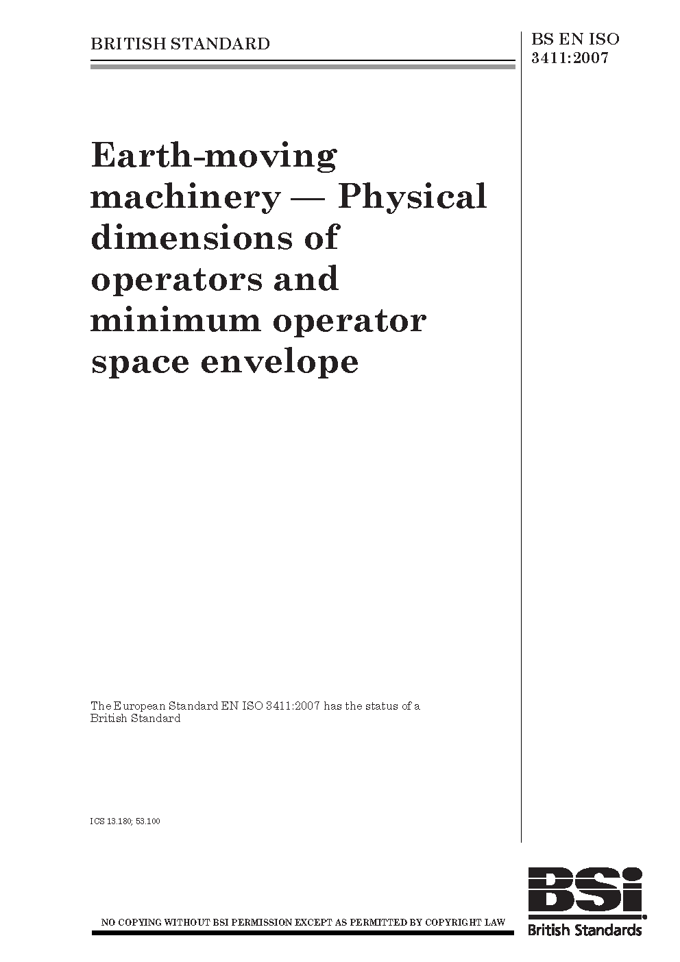 Earth-moving machinery. Human physical dimensions of operators and minimum operator space envelope