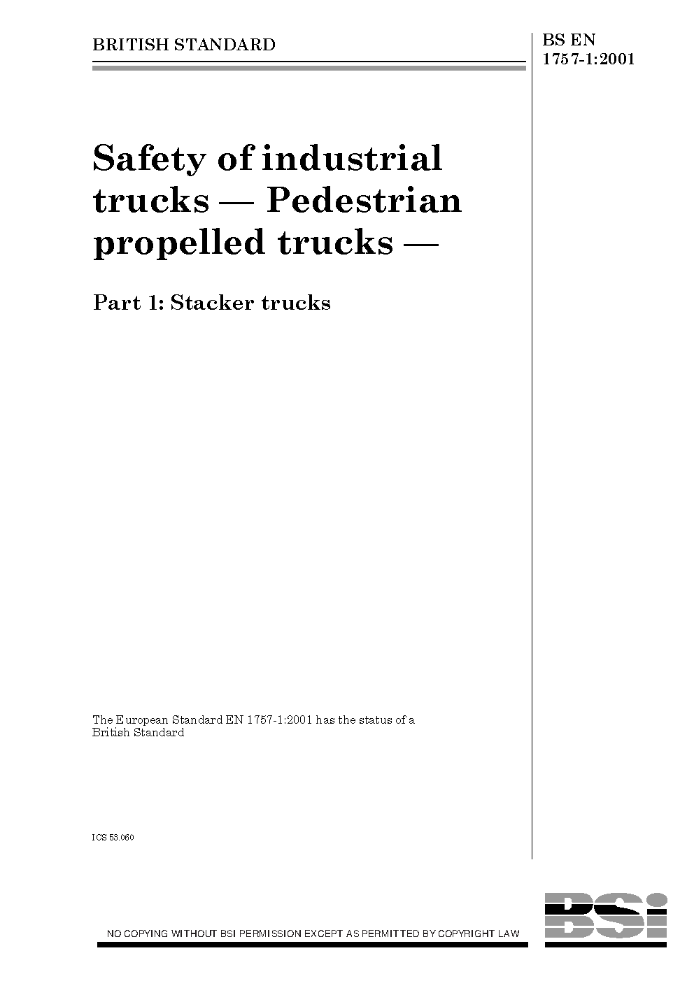 Industrial trucks. Safety requirements and verification Pedestrian-propelled trucks