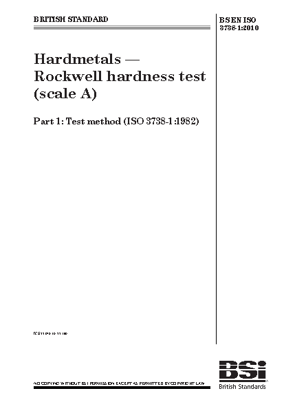 Hardness testing;Powder metallurgy;Hardmetals;Rockwell hardness measurement;Test equipment;Hardness measurement;Test specimens