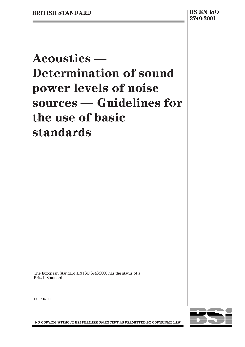 Acoustics. Determination of sound power levels of noise sources. Guidelines for the use of basic standards